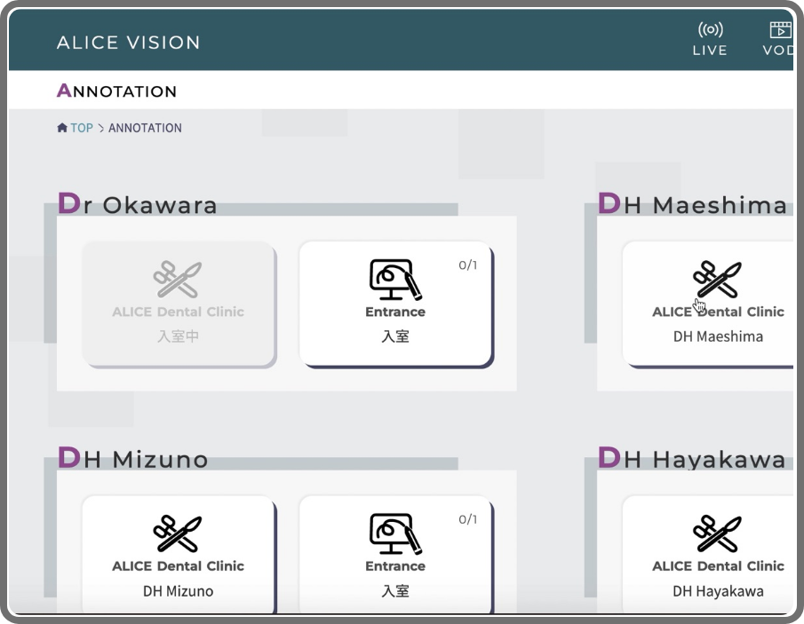 この機能は診療中のスタッフに対して音声・カーソル・線を